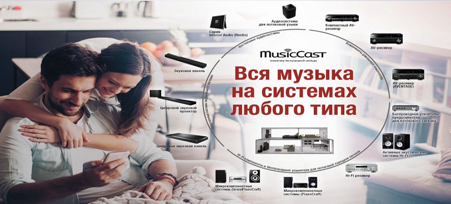 Всеми совместимыми компонентами поддерживается трансляция файлов наиболее популярных форматов с разрешением до 192 кГц, для ряда топ-моделей предусмотрен обмен данными DSD 5,6 МГц. Защищенная сеть функционирует на своей определенной частоте, не мешая другой беспроводной технике, ее развертывание и добавление новых устройств предельно упрощены. Приложение MusicCast для гаджетов на платформах от Apple и Google имеет понятный удобный интерфейс в том числе на русском языке, обновления выходят каждые три-четыре месяца. Приятным бонусом для обладателей техники Yamaha MusicCast является бесплатный доступ к музыкальному сервису vTuner. Рассказ о ноу-хау был бы неполным без упоминания нескольких наиболее интересных моделей бренда, в которых оно реализовано.